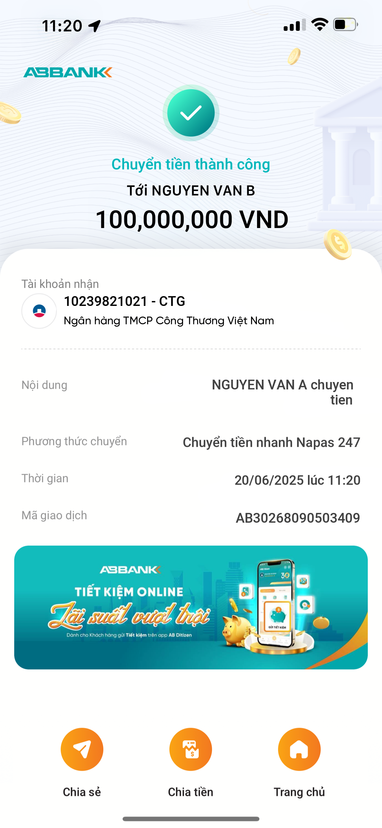 Tạo Bill ABBank